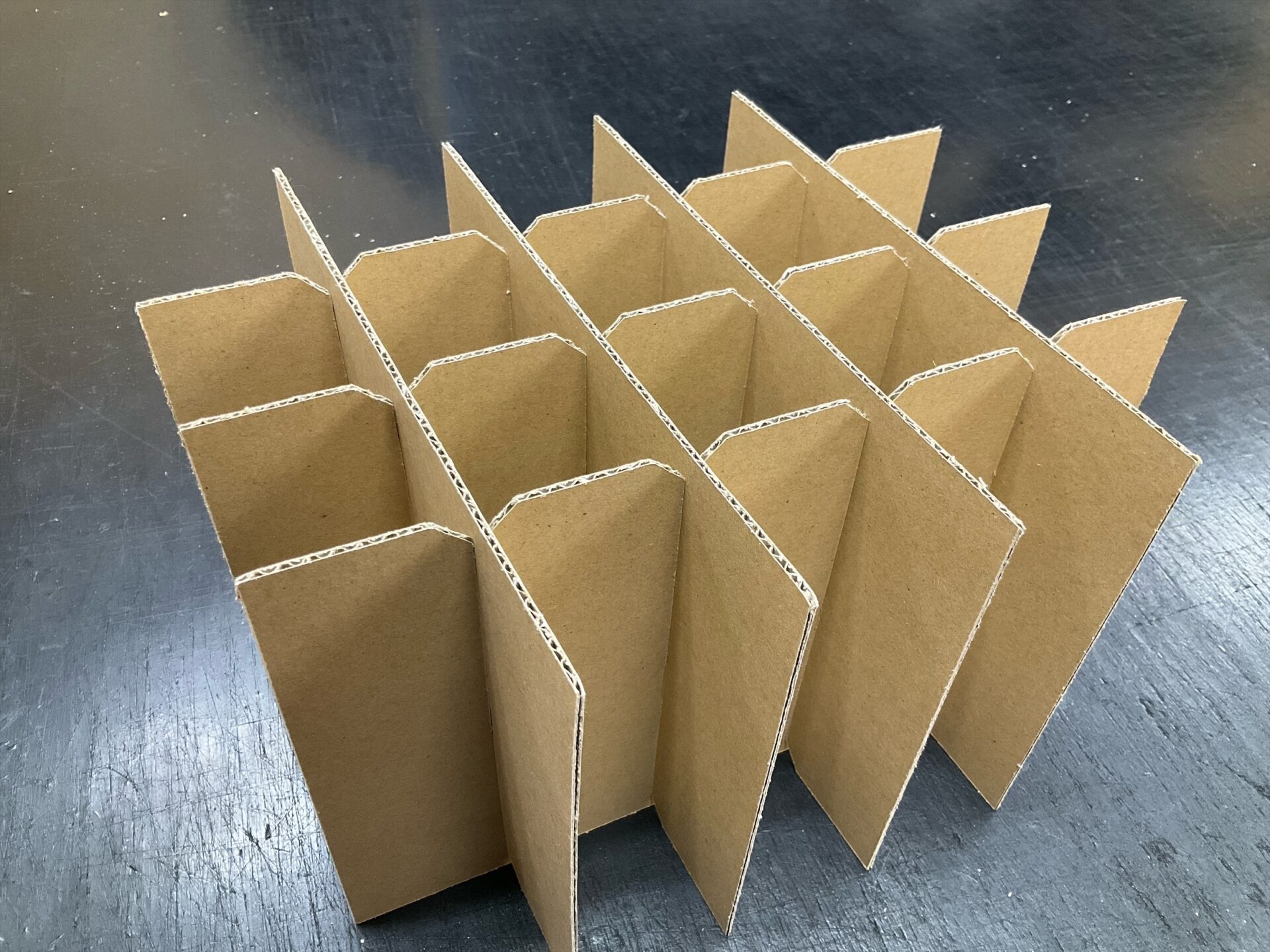 組仕切りは、切り込み部分を差し込んで「組むだけ」で形が完成します。特別な道具だったり専門的な技術は必要ありません。※弊社では組んで納品も可能でございます。